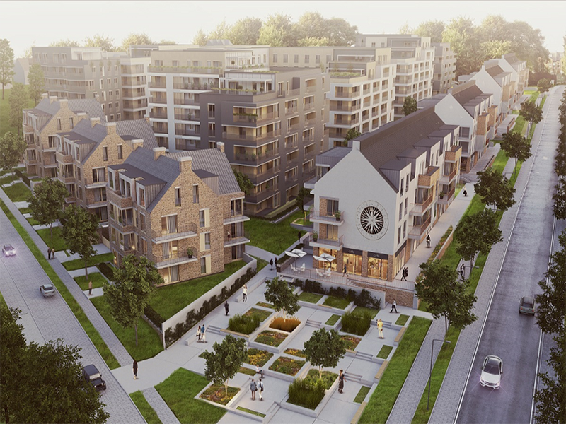 Osiedle u zbiegu ulic Powstańców Warszawskich i Legnickiej stanowi próbę stworzenia osiedla będącego odzwierciedleniem potrzeb współczesnego mieszkańca miasta. Położone w niewielkiej odległości od historycznego centrum Gdańska, na styku z terenami zielonymi, atrakcyjnymi przyrodniczo jak i krajobrazowo. Osiedle jest założeniem starającym się czerpać z okolicznych wzorców przestrzennych jak również implikować pewne nowe rozwiązania, urozmaicające okolicę.