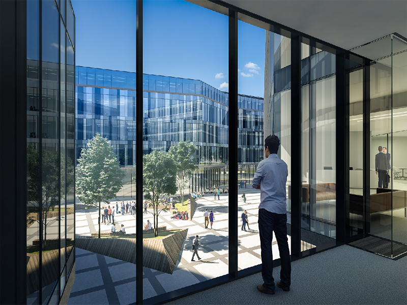 Każdy z budynków został zaprojektowany według podobnego schematu funkcjonalnego. W parterach budynków znajdują się powierzchnie komercyjne przeznaczone na lokale usługowe, handlowe i gastronomię. W centralnej części każdego z budynków z wejściem od strony wewnętrznego dziedzińca mieści się lobby wejściowe do części biurowej. Na kondygnacjach od drugiej do piątej zaprojektowano powierzchnie biurowe. Przestrzeń może być użytkowana zarówno w formie open-space jak i w układzie gabinetowym. W każdym z budynków zaprojektowano dwa wewnętrzne patia. Wokół piątej kondygnacji znajdzie się taras użytkowy, podobnie jak lokalnie na kondygnacji trzeciej i czwartej.
