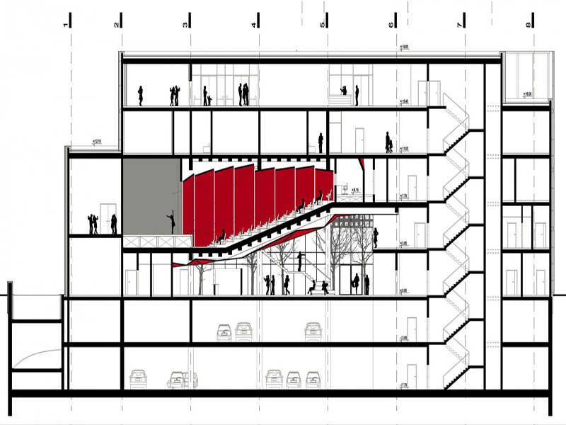 Mnogość funkcji skumulowanych w jednym budynku sprawia, że jeśli elewacja “odkryje” je wszystkie na raz, to całość staje się nieczytelna dla odbiorcy. Dlatego budynek ubrany w “koronkę” ukazuje nam tylko tyle, żeby zadziałać na naszą wyobraźnię, ciekawość.