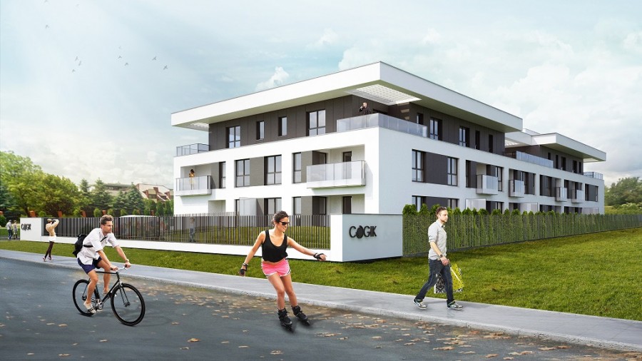 Projektowany budynek został ukształtowany na planie litery C otaczającej wewnętrzny dziedziniec zielony zlokalizowany na płycie garażu podziemnego.